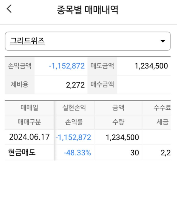 첫째. 상장당일 그리드위즈 머리에서 매수 (실현손익은 아래에서 확인)