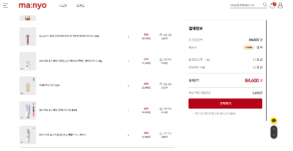 전 총 6개를 담았고 총 가격은 84,600원이네요