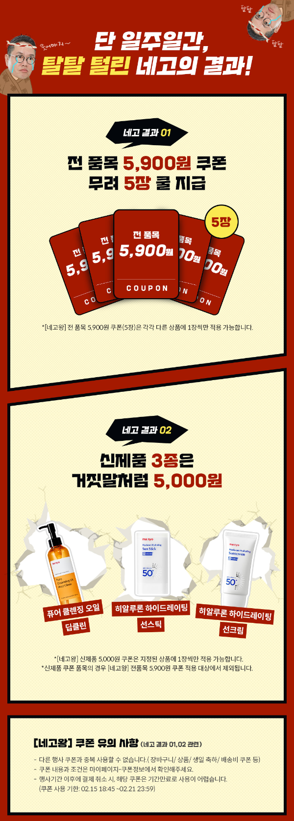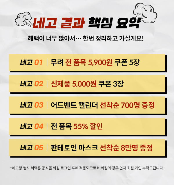 전 품목 5,900원에 구매 할 수 있는 쿠폰 5장이 지급 됩니다!!!