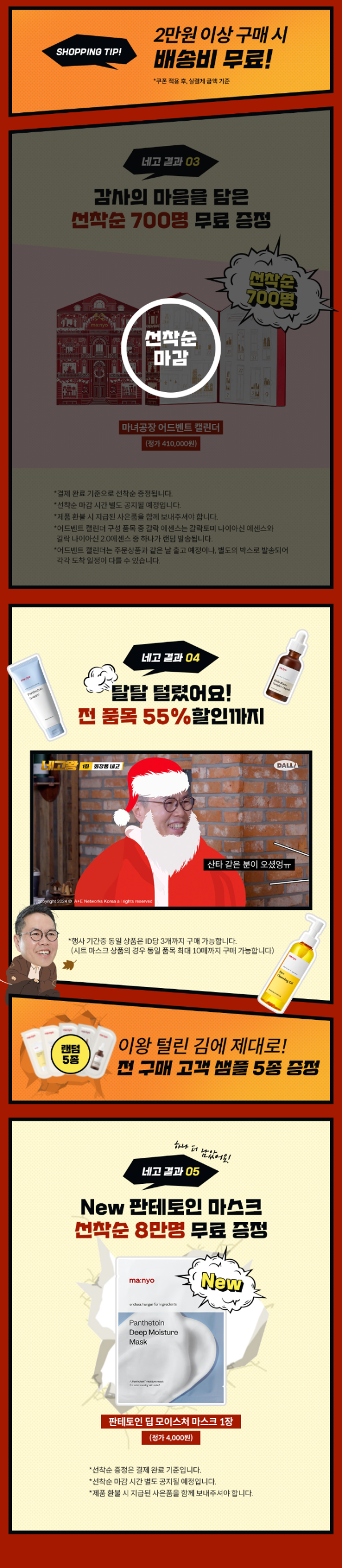 현재 전 품목 55%를 할인 중에 있구요 ~~ 여기서 끝나는건 아닙니다!