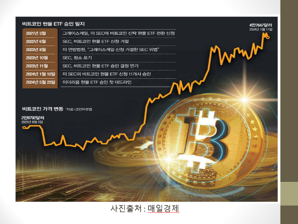 비트코인 현물 상장지수펀드(ETF)가 미국에서 승인됨에 따라 비트코인을 비롯한 가상자산 운용시장이