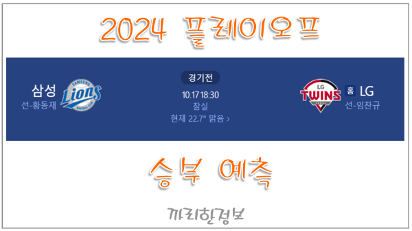삼성과 LG의 2024년 KBO 플레이오프 3차전이 내일 펼쳐집니다.