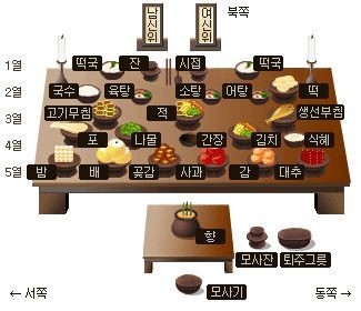 제사상에 올리는 음식들의 위치