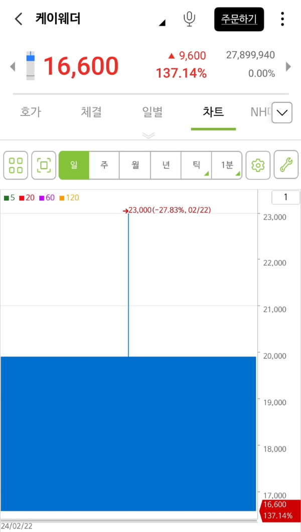 최대 300% 상승을 기대 했으나 오전에 228.57%까지 상승했다가 하락하며 137.14% 상승에 그쳤습니다.