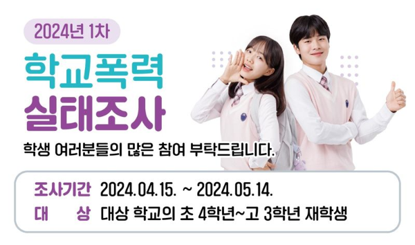 학생 생활 및 인성 교육과를 이끄는 이지명 과장은 커뮤니티의 의견 공유가 학교 폭력을 예방하고 대처하는 전략을 개발하는 데 얼마나 중요한지 믿고 있습니다. 우리가 더 많이 공유할수록, 우리는 학교를 안전하게 유지하기 위한 접근 방식을 맞춤화하는 데 도움이 될 중요한 데이터를 제공하는 조사 결과를 기대하고 있습니다.
