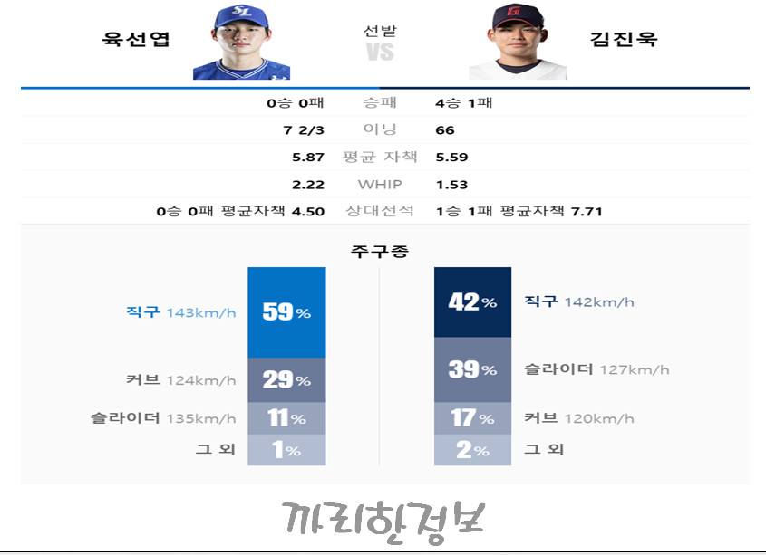 반면 롯데의 김진욱은 다소 기복이 있는 피칭을 보여주고 있습니다. 최근 5경기에서는 평균 자책점(ERA) 4.10으로 안정감이 부족해 보였으며, 특히 볼넷 허용률이 높은 점이 약점으로 작용할 수 있습니다.