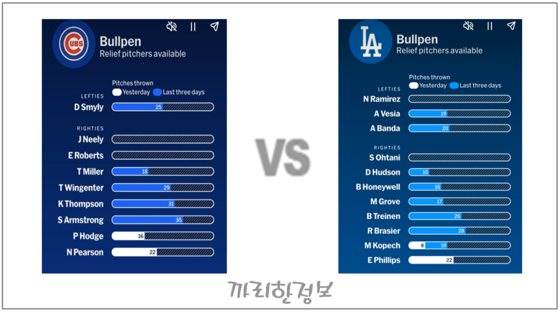 내일 경기에서는 두 팀 모두 선발 투수의 역량이 승부를 가를 중요한 요소가 될 것으로 보입니다. 카일 헨드릭스가 초반에 실점을 억제한다면, 컵스는 경기 후반 타선이 폭발할 가능성이 높아요. 반면, 워커 뷸러가 경기 초반부터 상대 타선을 철저히 봉쇄한다면, 다저스는 꾸준한 득점 루트를 통해 경기를 지배할 가능성이 큽니다. 타선의 흐름과 두 팀의 불펜 활용이 경기 결과에 큰 영향을 미칠 것이며, 예측하기 어려운 팽팽한 승부가 펼쳐질 것으로 기대됩니다.