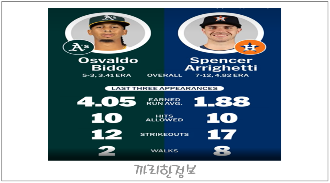 내일 경기는 오스발도 비도의 안정적인 투구와 스펜서 아리게티의 강력한 구위가 맞붙는 만큼 팽팽한 승부가 될 것으로 보입니다. 휴스턴은 홈 경기에서의 강한 면모를 보여주고 있지만, 오클랜드의 타선도 만만치 않게 살아나고 있습니다. 타격전보다는 투수전으로 흘러갈 가능성이 높으며, 휴스턴이 최근 경기에서 보여준 수비 집중력 또한 관건이 될 것입니다. 결론적으로, 두 팀의 선발 투수 싸움이 관전 포인트가 될 것이며, 양 팀 모두 경기를 승리로 이끌기 위해 치열한 공방을 펼칠 것으로 예상됩니다.