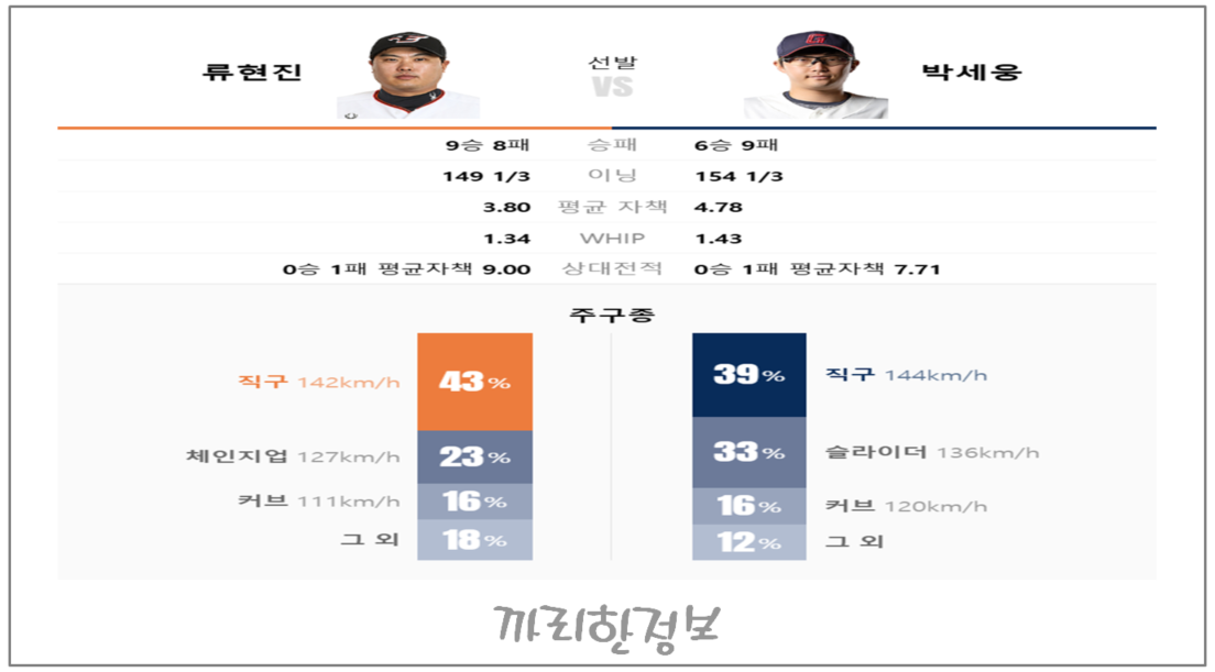 | 박세웅 | 3승 2패 | 3.20 | 2.5 | 3승 2패 |