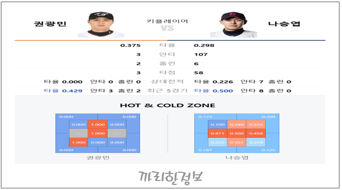 반면 나승엽은 롯데의 젊은 스타로, 빠른 출루 능력과 홈런 능력을 겸비한 선수입니다. 최근 10경기에서 타율 0.290, 출루율 0.370을 기록하며 꾸준히 팀에 기여하고 있습니다. 롯데가 공격에서 활약할 때 나승엽의 한 방은 큰 변수가 될 것입니다.