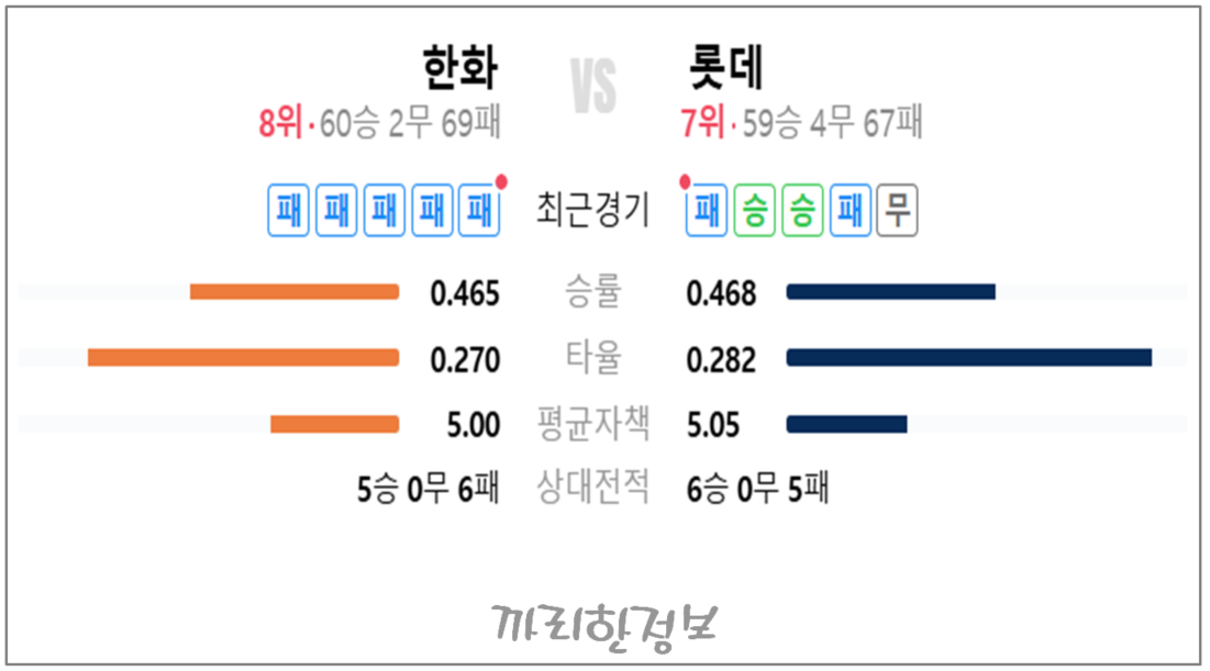 한화와 롯데는 최근 10경기에서 팽팽한 대결을 펼쳤습니다. 롯데가 6승 4패로 근소하게 앞서고 있지만, 한화도 홈에서는 강한 모습을 보였습니다. 특히 한화는 최근 두 번의 홈 경기에서 모두 승리하면서 홈에서의 강점을 다시 한번 확인했습니다. 반면 롯데는 원정 경기에서 다소 기복 있는 모습을 보였지만, 최근 경기에서는 반전을 보여주며 경기를 주도했습니다.