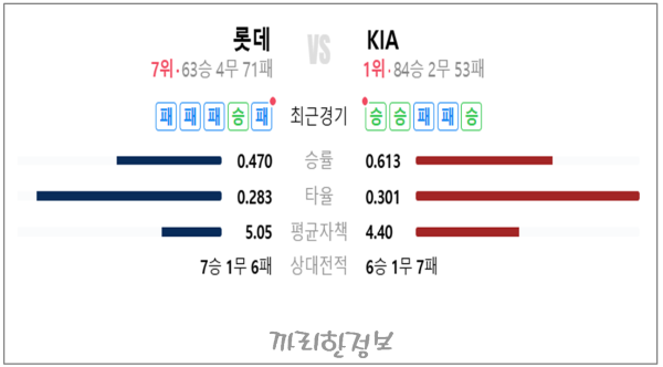 롯데 vs KIA 최근 경기