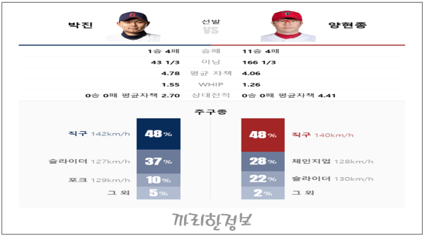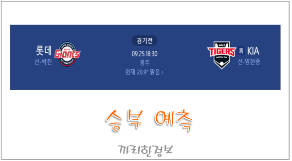 저는 이경기 KIA 양현종의 승리를 예상 합니다.