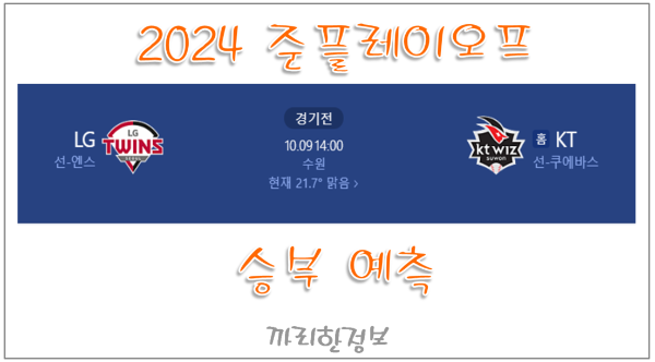 어제 LG가 1점차로 승리를 가져갔지만 오늘은 큰 차이로 KT의 승리 / 다득점 예상합니다.