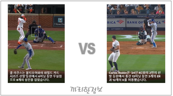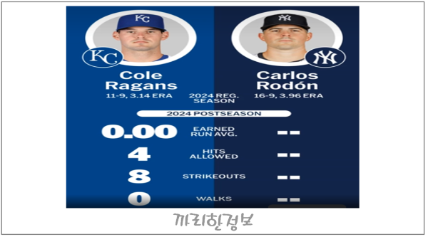 내일 열리는 2차전에서는 Kansas City의 Cole Ragans와 New York Yankees의 Carlos Rodon이 선발로 나섭니다.
