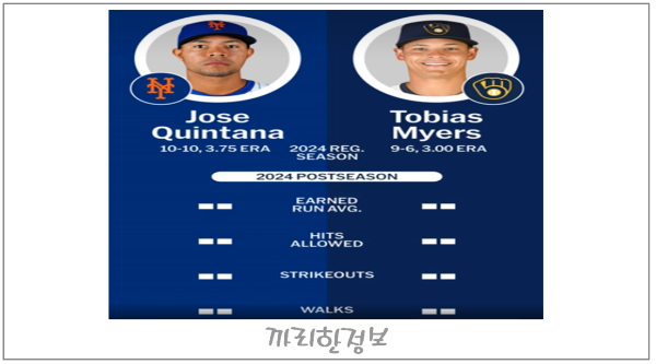 내일 MLB 와일드카드 게임에서는 뉴욕 메츠와 밀워키가 격돌합니다. 특히 주목할 점은 뉴욕 메츠의 선발 투수 호세 퀸타나와 밀워키의 선발 투수 토바이어스 마이어스가 맞붙는다는 점입니다. 두 팀은 최근 경기에서 접전을 펼쳤으며, 과연 이 중요한 경기에서 어떤 결과가 나올지 궁금증이 커지고 있죠. 이번 포스팅에서는 두 투수의 최근 성적과 컨디션, 그리고 두 팀의 최근 맞대결 기록을 바탕으로 내일 경기를 예측해보겠습니다.