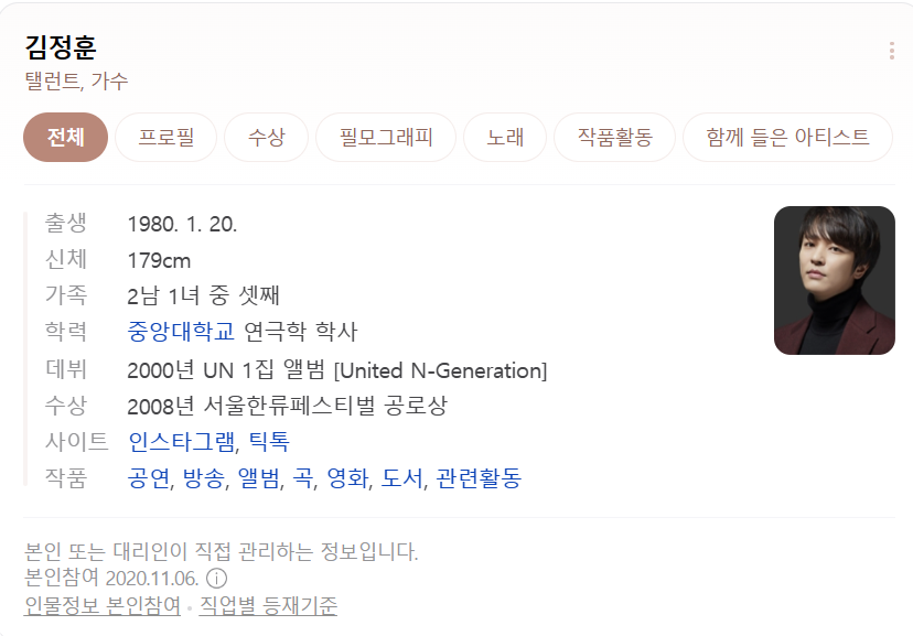 과거 UN그룹에서 꽃미남 보컬로 인기를 많이 받았었으며